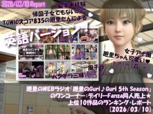 3DCG 【大興奮でドピュ!】【▲20】英語★廻里の自撮りWEBラジオ『廻里のGuriGuri(グリグリ)5thシーズン』のワンコーナー:デイリーFanza同人売上★上位10作品のランキング・レポート[2026/03/10]もうたまらんw