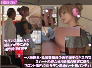 3DCG 【大興奮でドピュ!】一ノ瀬廻里・私服登校日の通学途中のバス内でスカート内逆さ撮り盗撮の被害に遭う:フロント版PV04(サテン黒地ハート柄パンティ)エロすぎやろ…